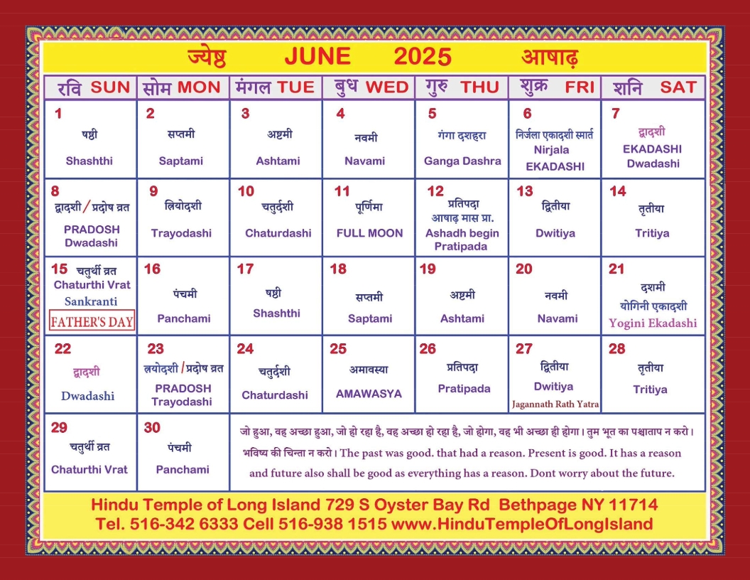 Hindu Calendar 2025 June