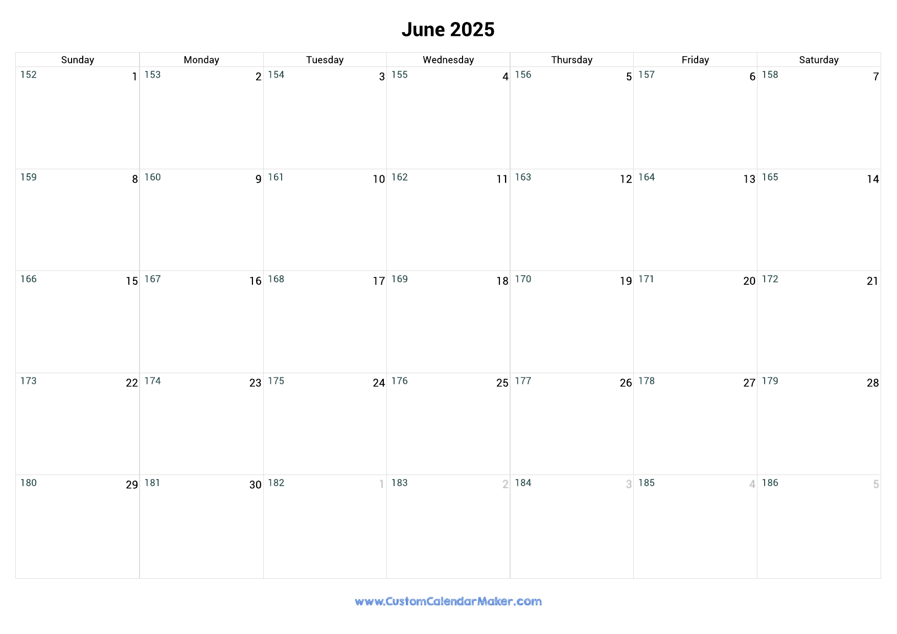 June 2025 Day Number Of The Year Calendar Custom Calendar Maker