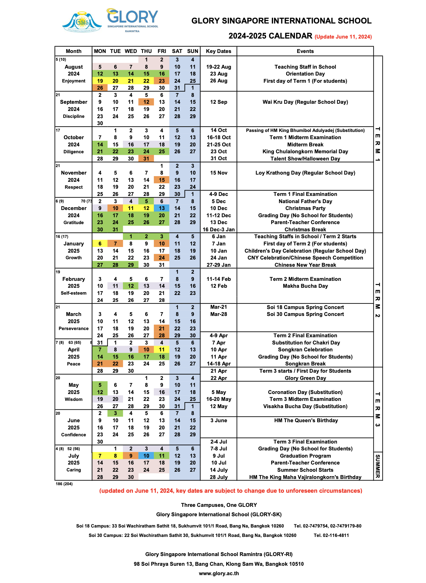 School Calendar 2024 2025 Updated June 2024 Glory Singapore International School