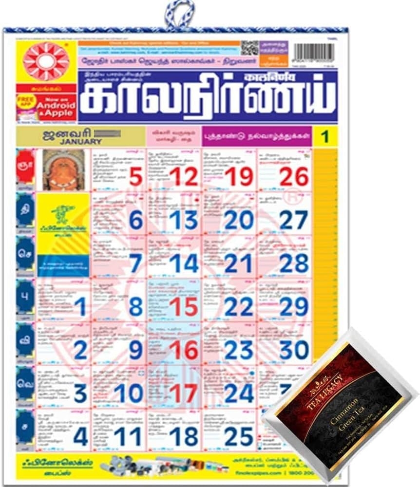 Max Supermarkets Kalnirnay Tamil Monthly Wall Calendar 2026 Year Include TeaLegacy Sample Pack Varshik Panchang Date Wall Chart Utility Calmanac Home Office Wall Hanging Almanac Size 17