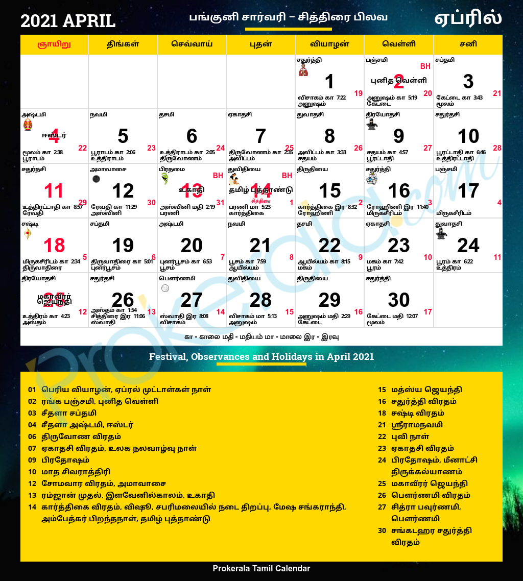 Make the most of April 2026 by staying informed and organized with the Tamil calendar for that month. With all the essential details at your fingertips, you can navigate through the month with ease and enjoy all the festivities and cultural events that April has to offer.