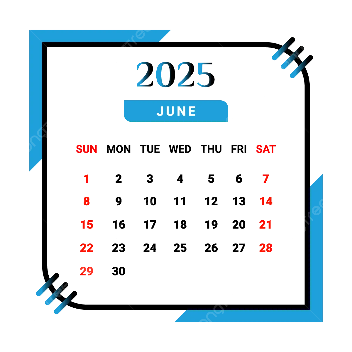 2025 June Month Calendar With Black And Skyblue Vector Monthly Calendar Calendar June 2025 PNG And Vector With Transparent Background For Free Download