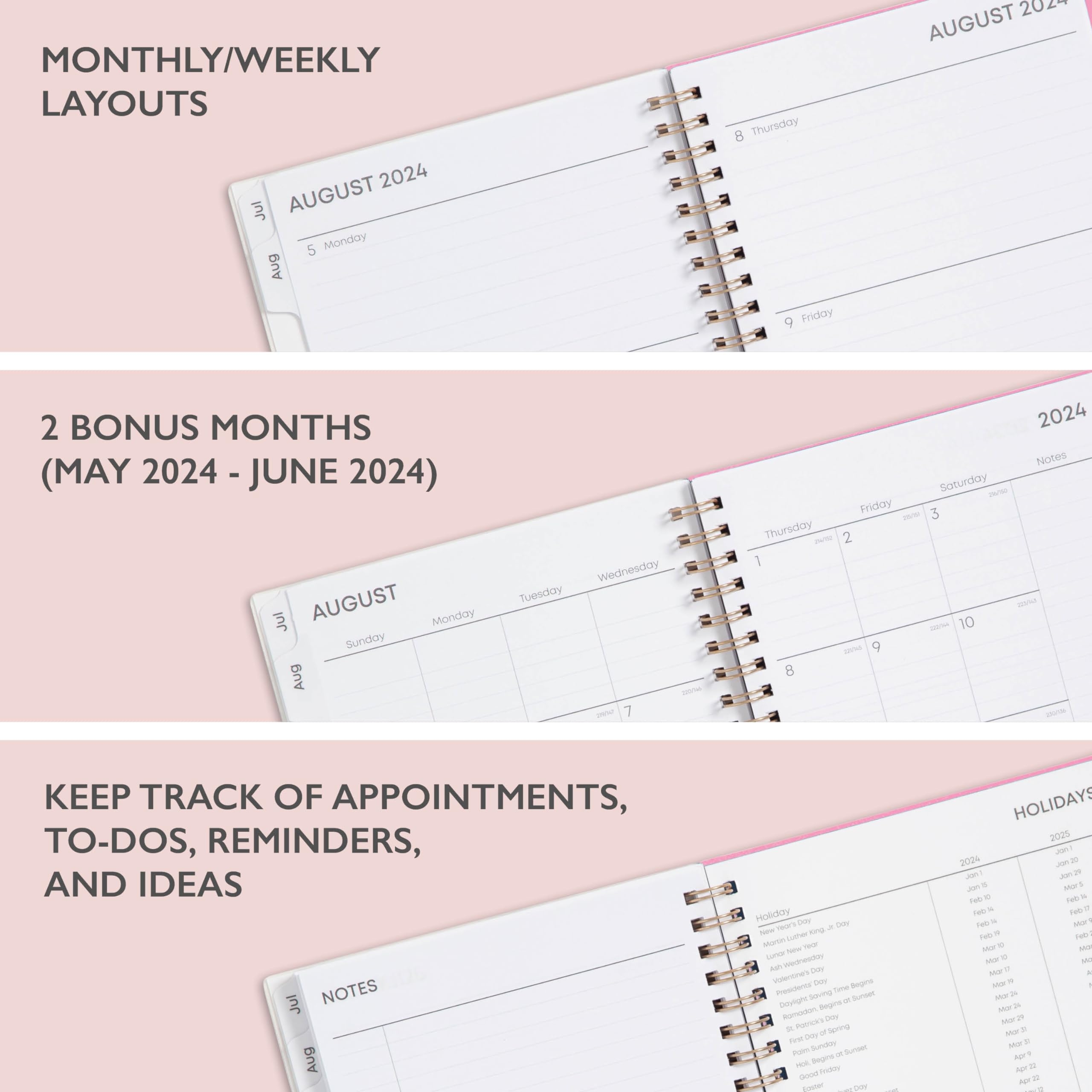 Blue Sky 2024 2025 Weekly Monthly Planner 5×8 Roosevelt Pink