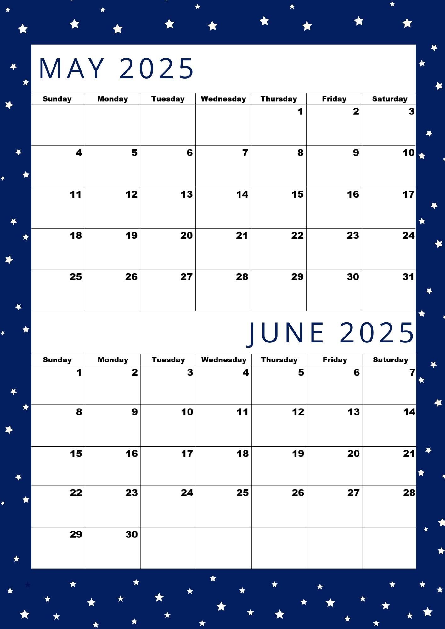 May And June 2025 Calendar Custom Calendar Maker