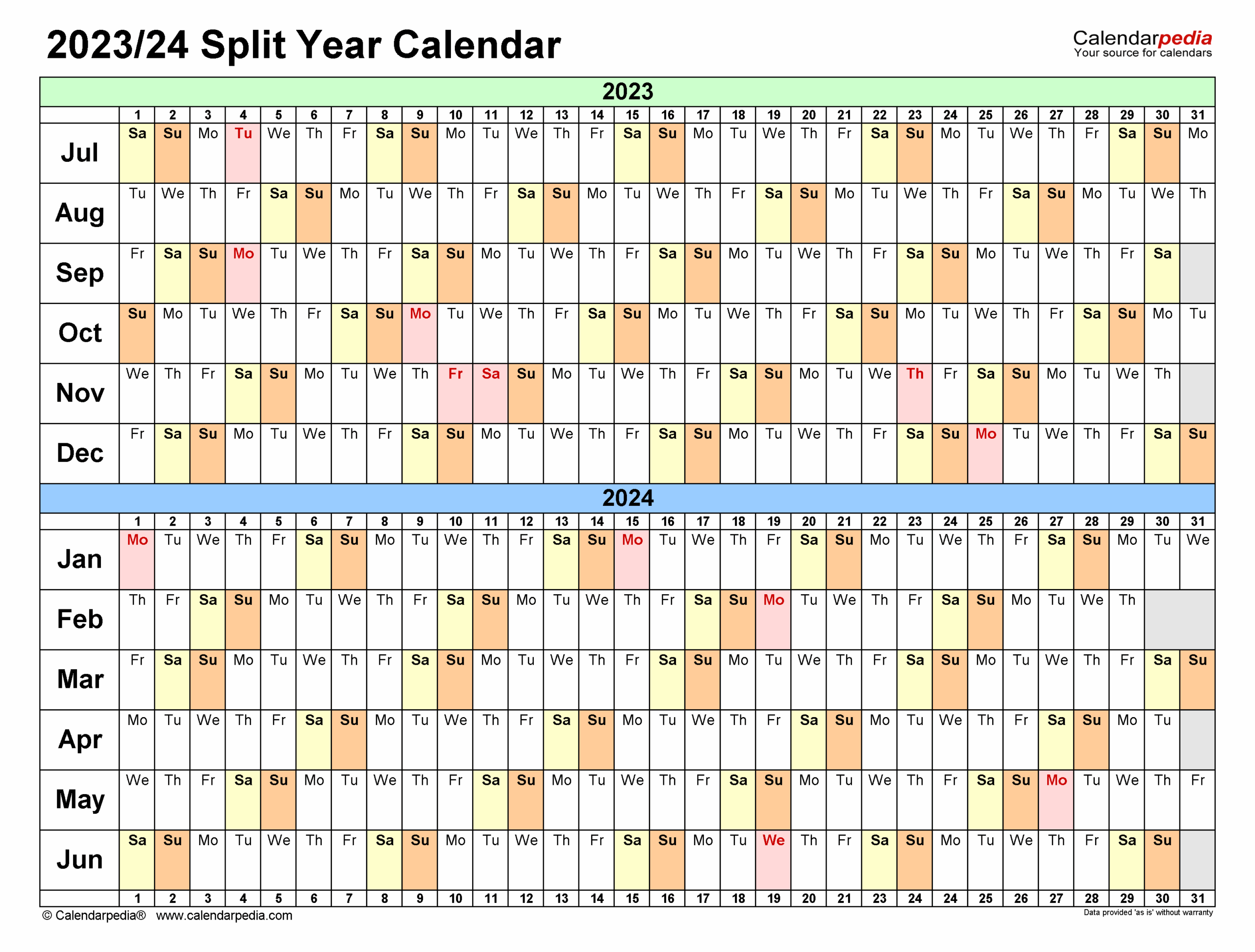 Split Year Calendars 2023 2024 July To June PDF Templates