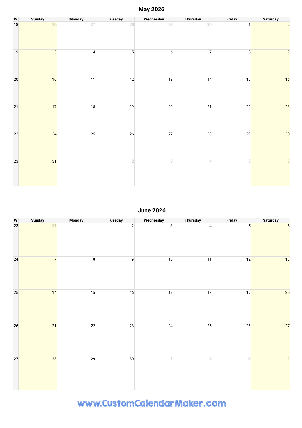 May And June 2026 Calendar Custom Calendar Maker