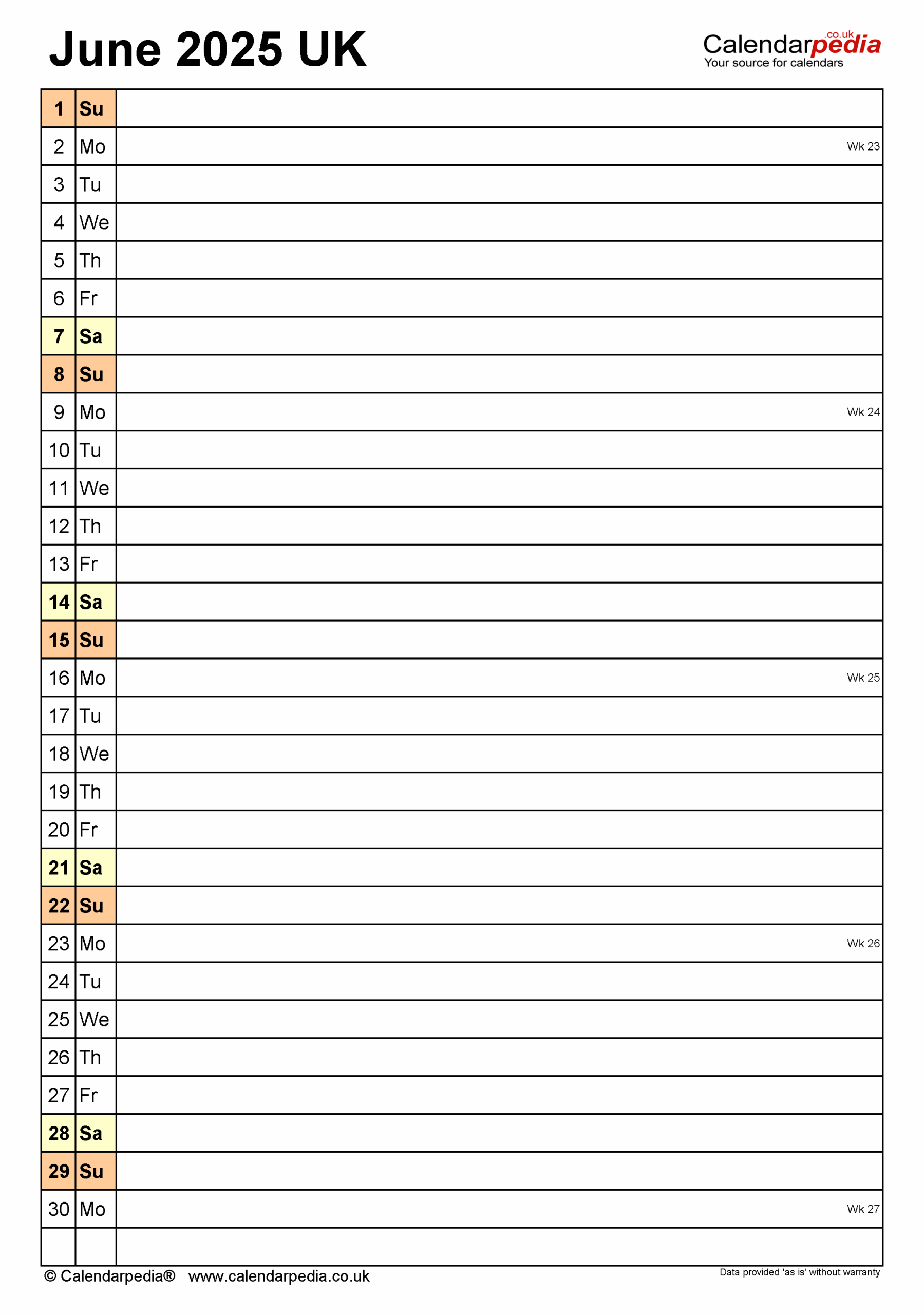 Calendar June 2025 UK With PDF Excel And Word Templates