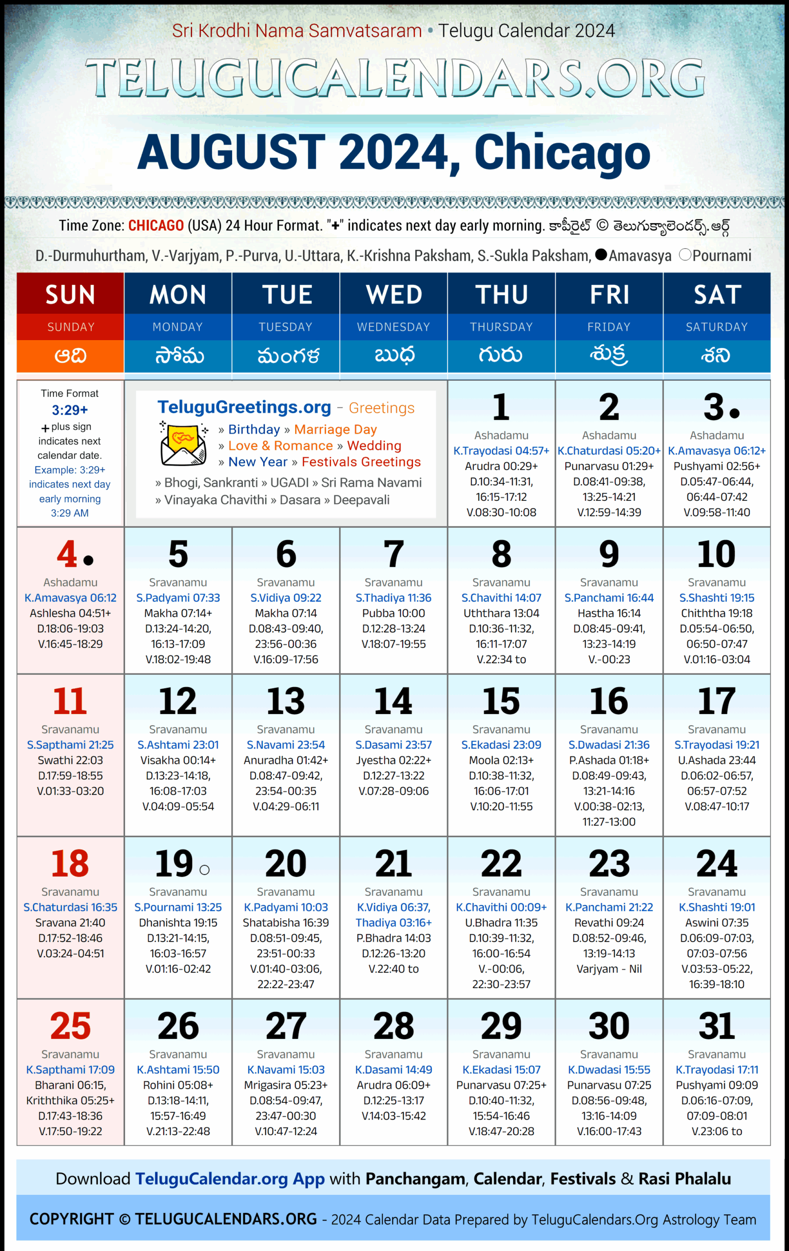 Chicago 2024 August Telugu Calendar Festivals U0026 Holidays In