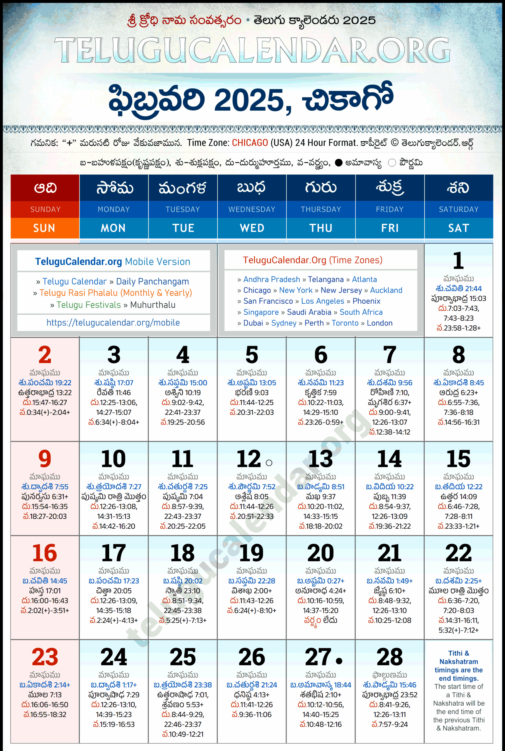 Chicago Telugu Calendar 2026 February