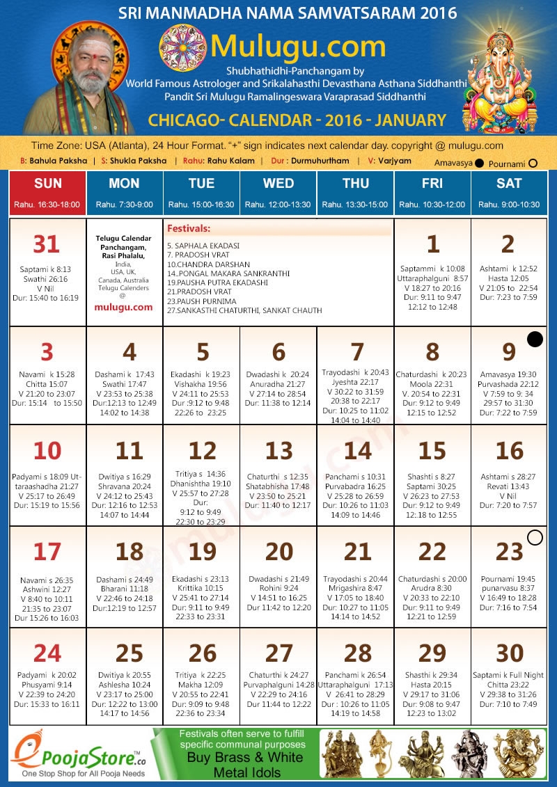 Chicago Telugu Calendar 2016 January Mulugu Telugu Calendars