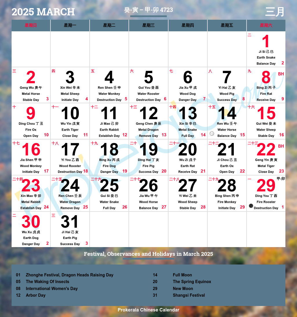 Chinese Calendar 2025 March 2025