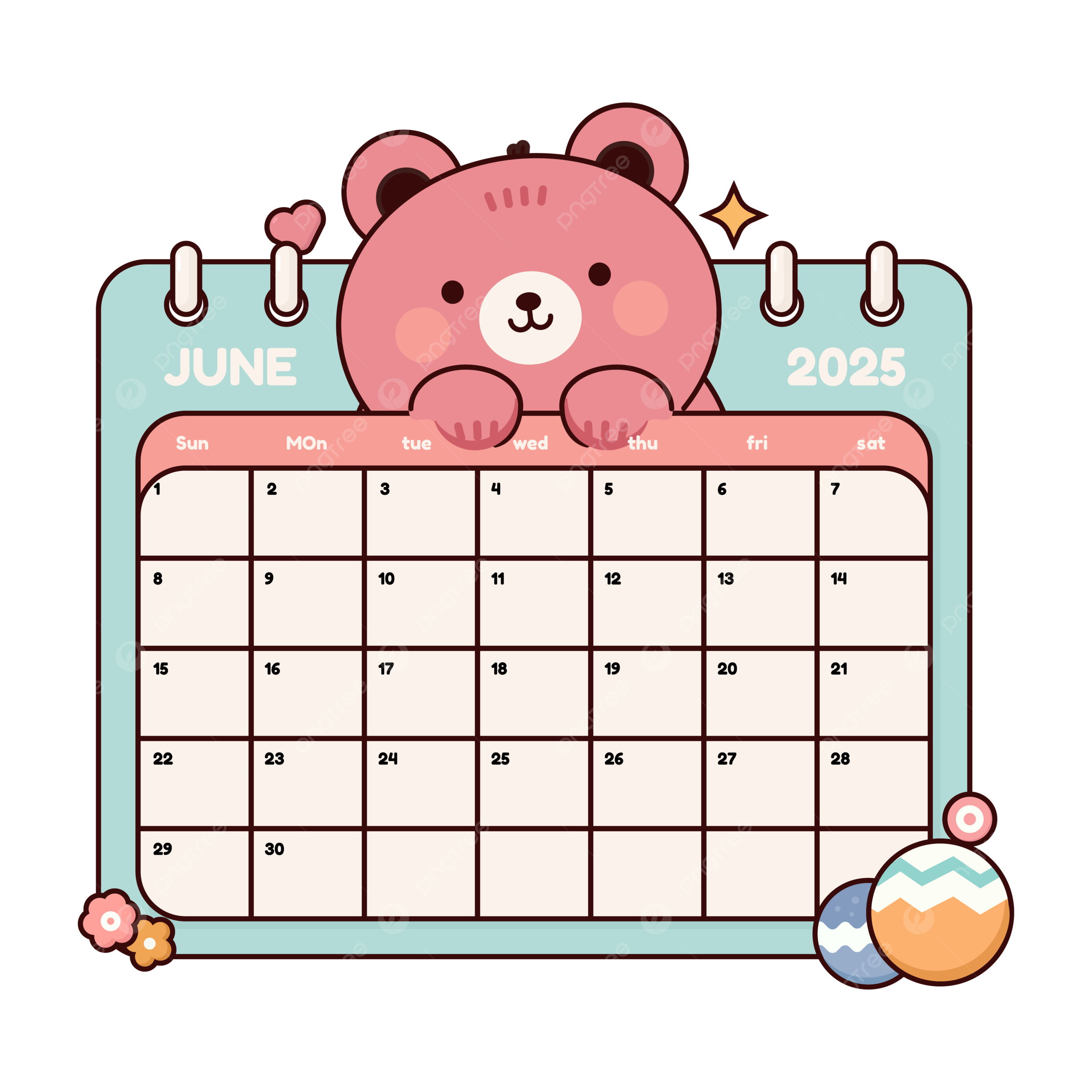 Cute June 2025 Calendar With A Pink Bear Vector Calendar 2025 June PNG And Vector With Transparent Background For Free Download