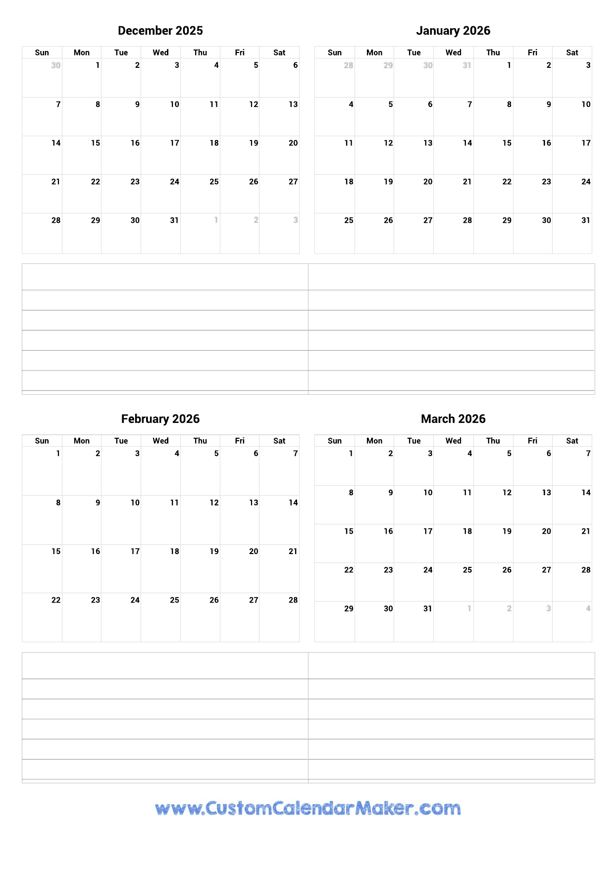 December 2025 To March 2026 Printable Calendar Custom Calendar Maker