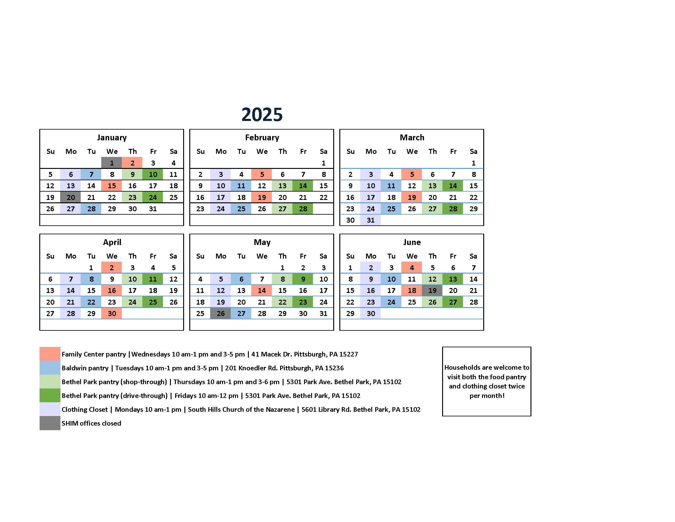 Food Bank Calendar June 2025
