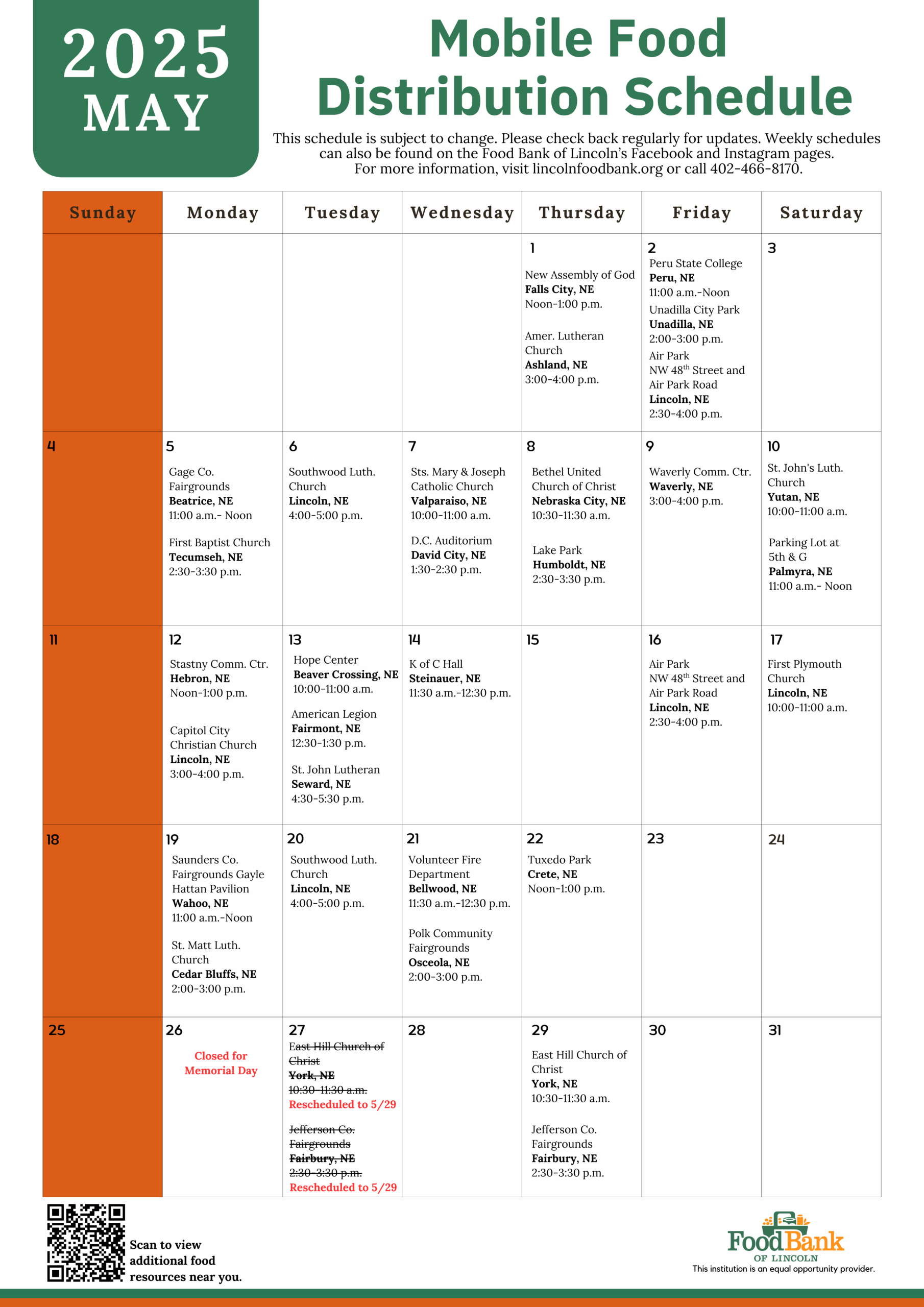 Food Distribution Schedule Food Bank Of Lincoln