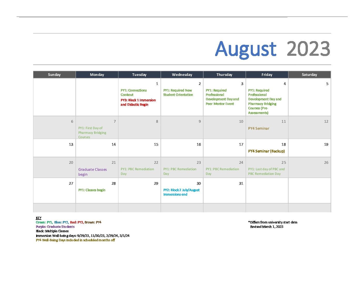 Academic Calendar 2023 2024 03012023 FAO UNC Eshelman School Of