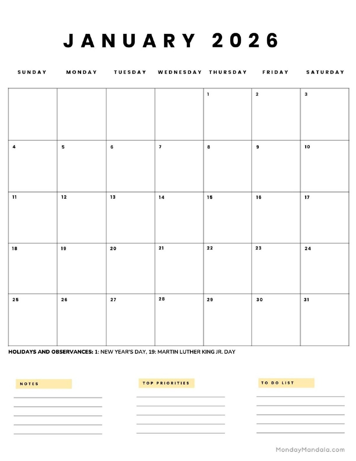 January 2026 Calendars Free PDF Printables