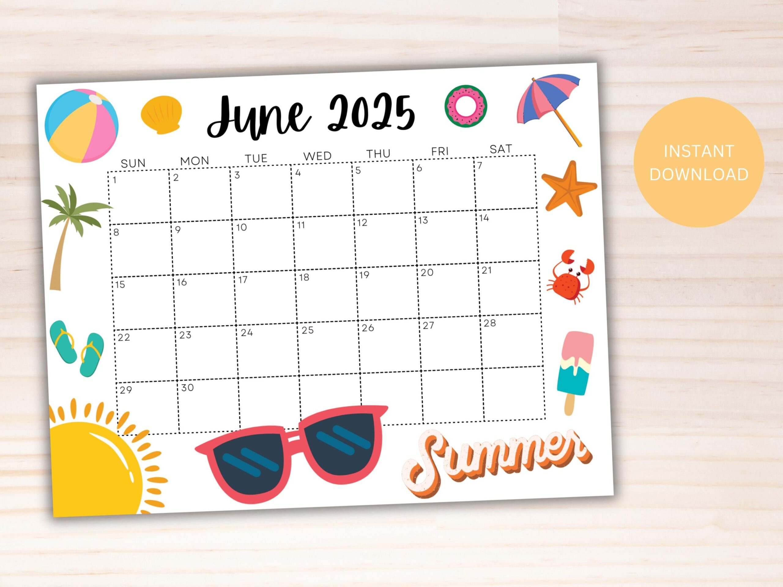 June 2025 Editable Wall Calendar Printable Classroom Calendar