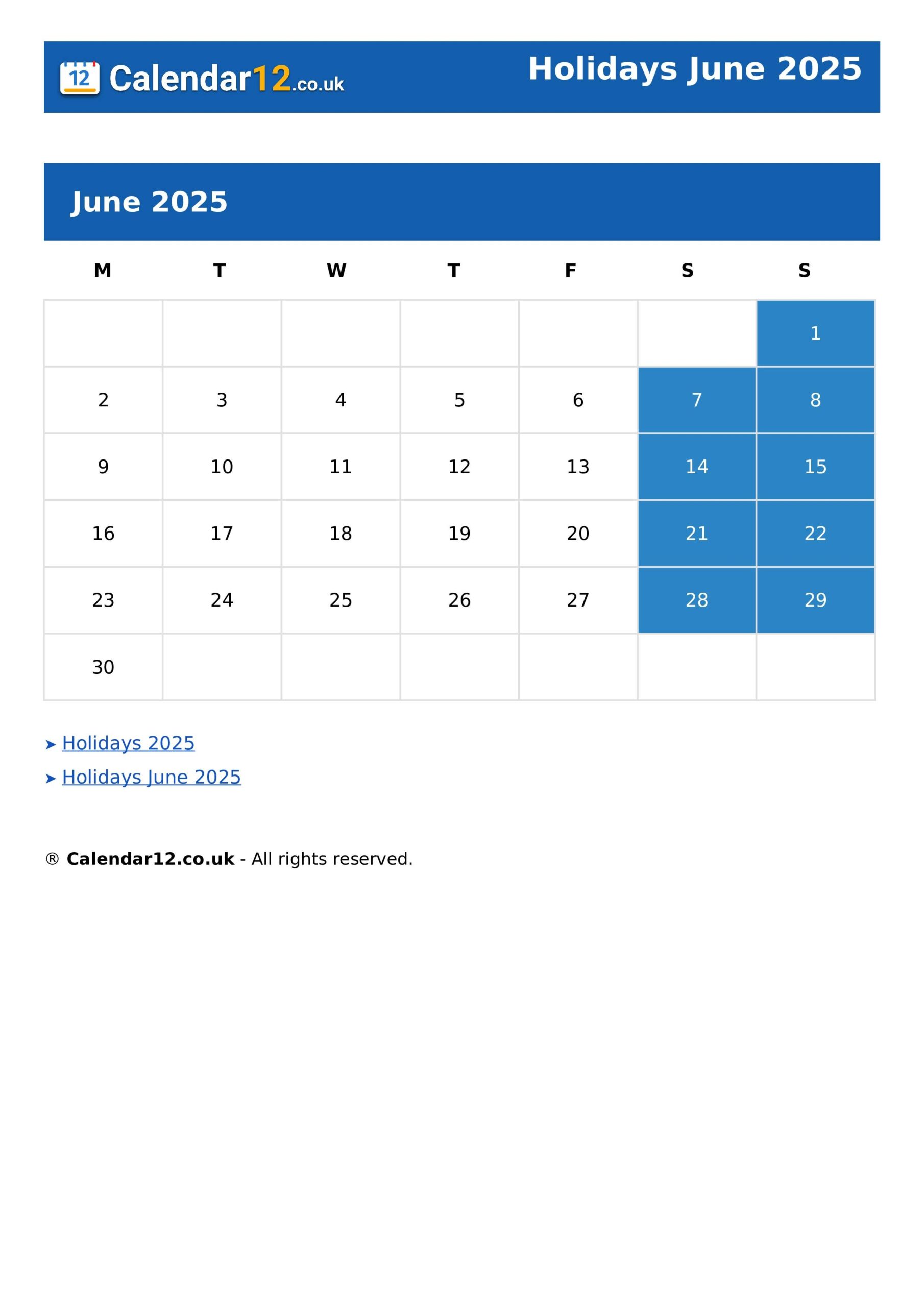 Holidays June 2025 Calendar12 co uk