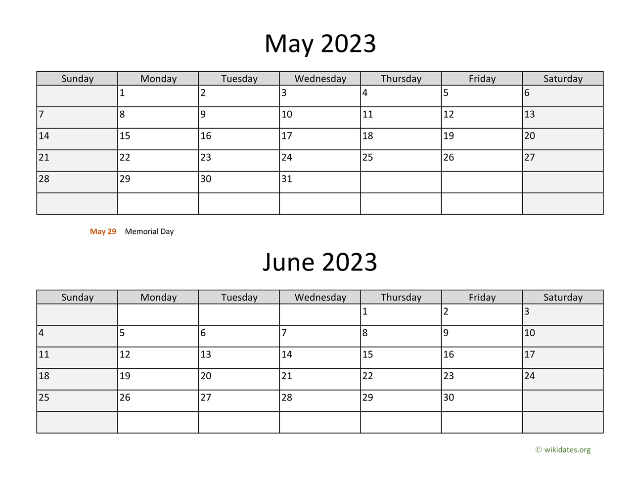 May And June 2026 Calendar Printable PDF 2 Month Calendar Template
