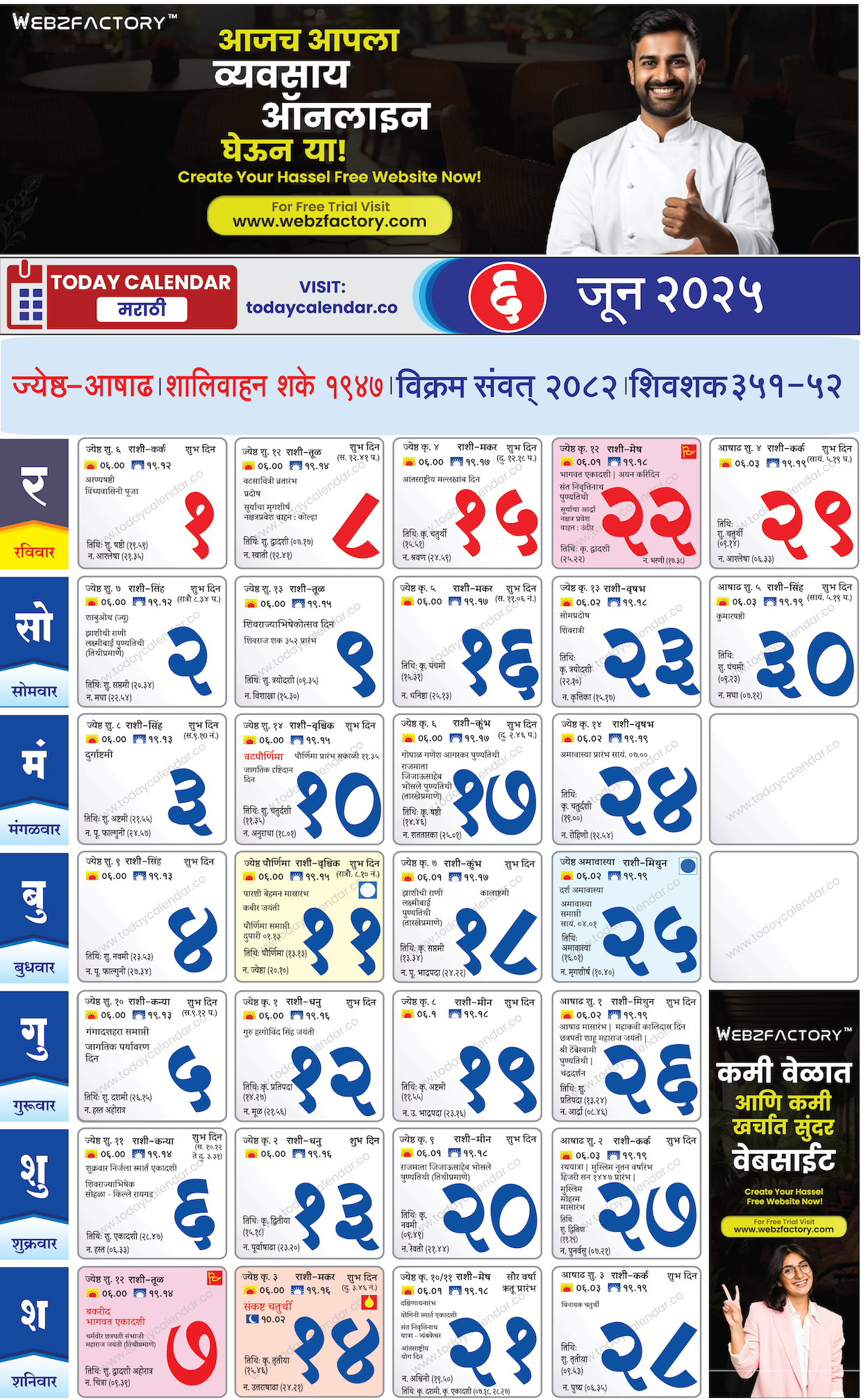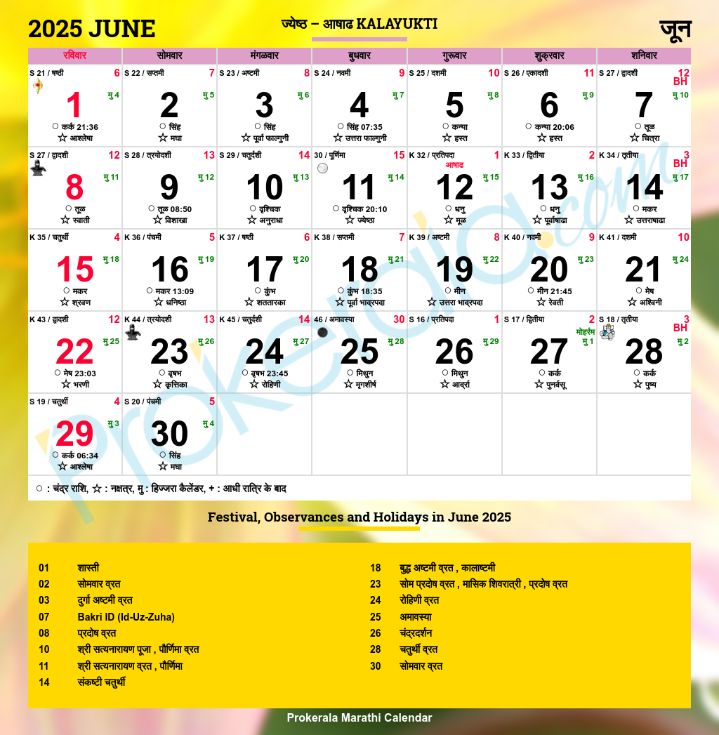 June 2025 Calendar Marathi