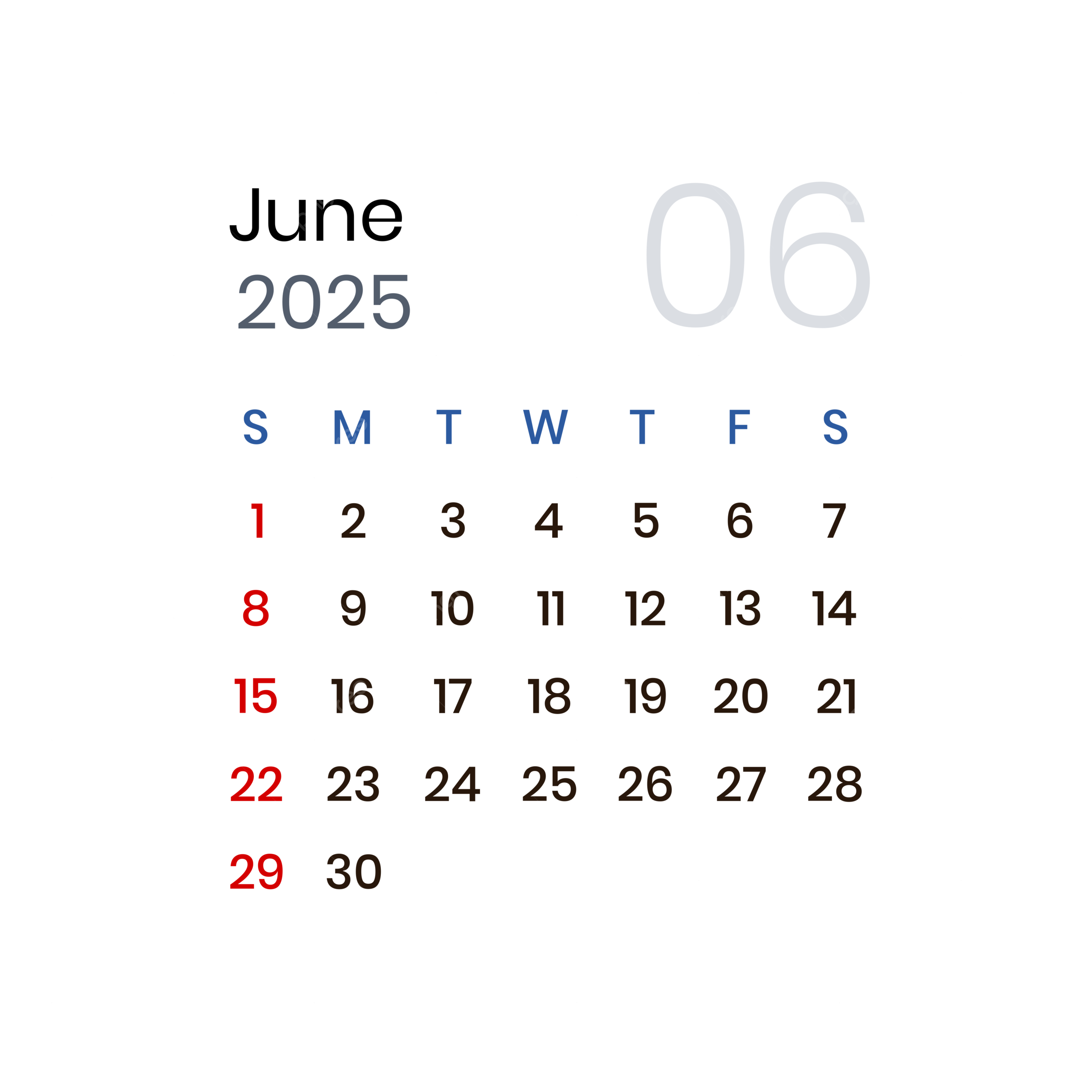 Stay organized and on top of your schedule with our June 2025 calendar PNG images. Whether you prefer a minimalist design or a colorful layout, we have something for everyone. Download your favorite calendar today and start planning for the month ahead.
