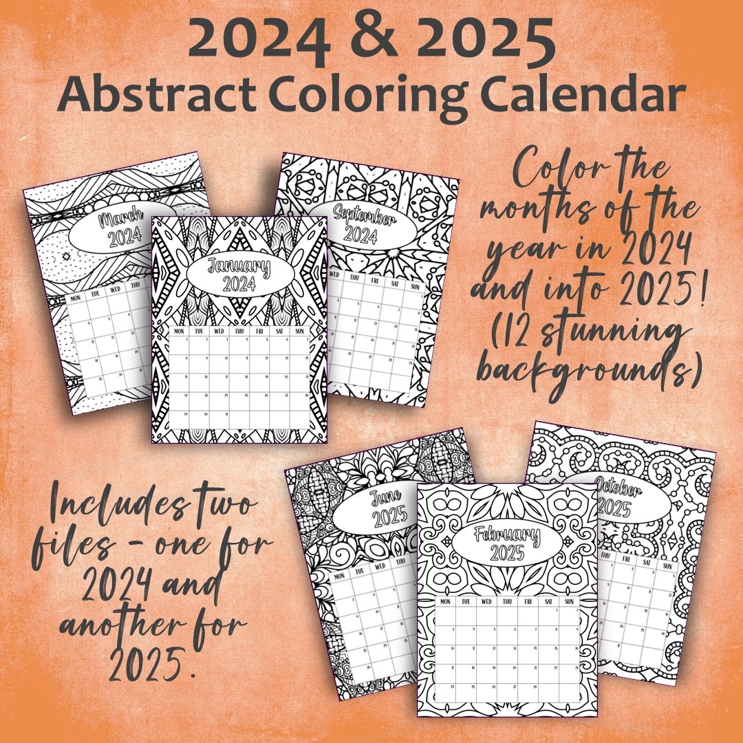 2024 U0026 2025 Abstract Coloring Calendar Plan Journal Color