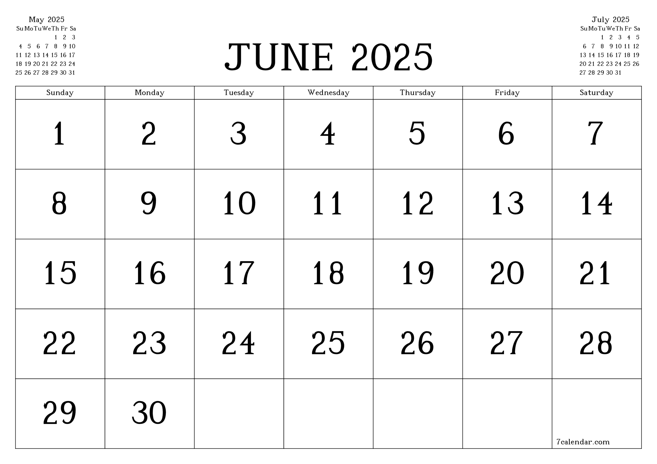 June Calendar 2025 Printable Template 7calendar
