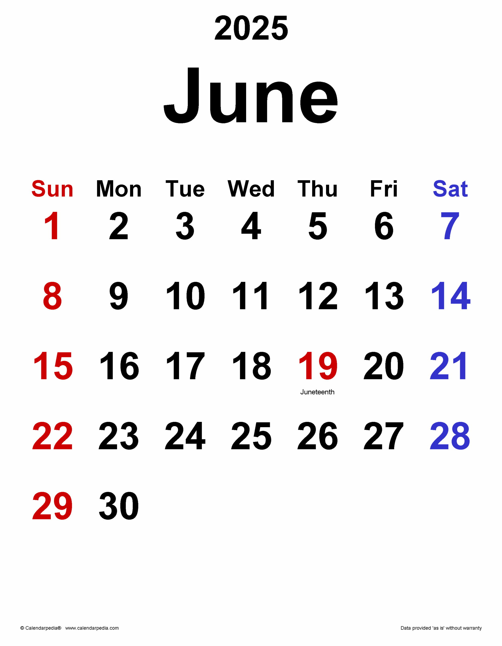 June 2025 Calendar With Extra large Dates WikiDates