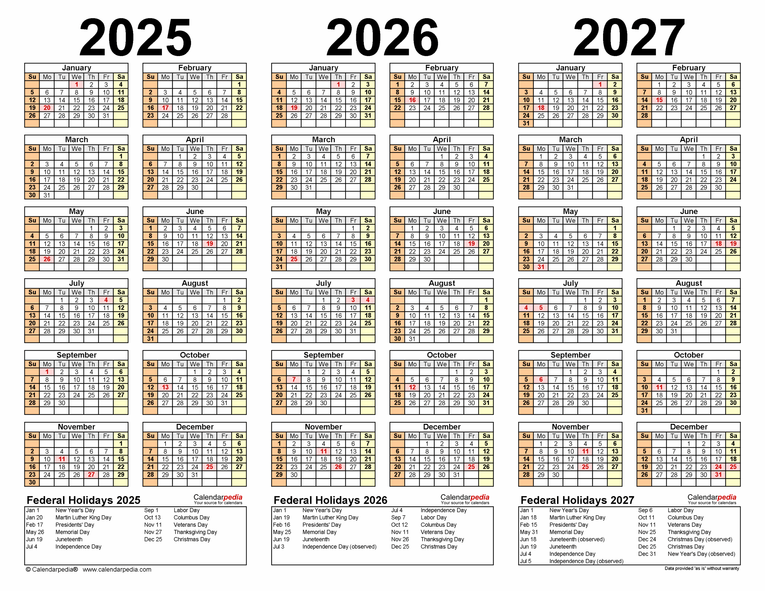 2025 2027 Three Year Calendar Free Printable PDF Templates