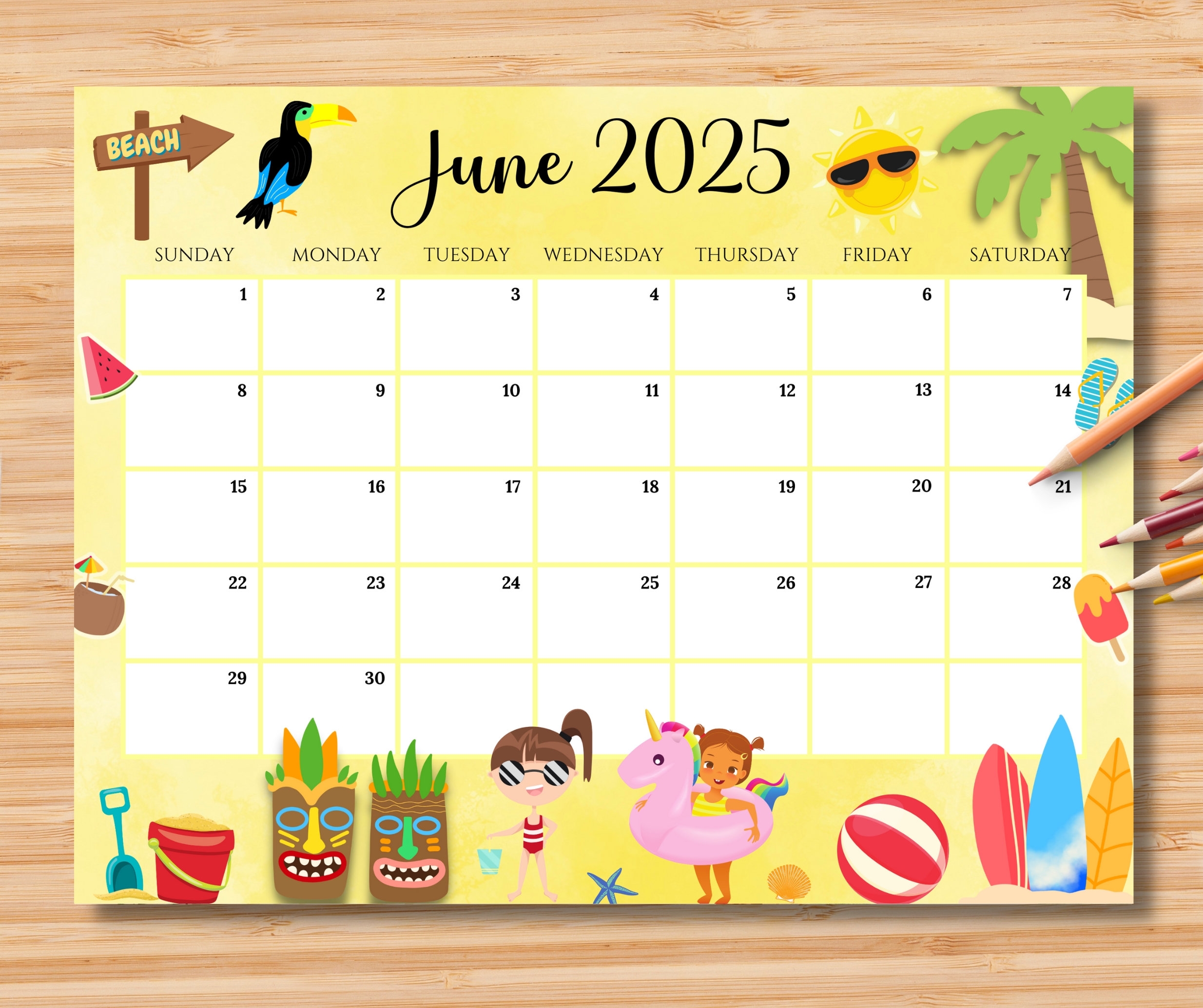 EDITABLE June 2025 Calendar Happy Summer W sweet U0026 Colorful