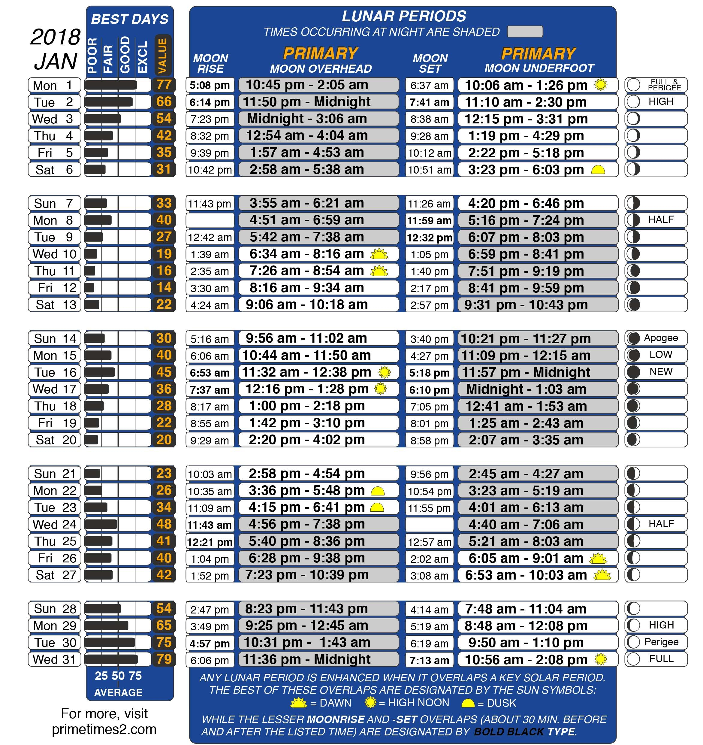 In Fisherman Solunar Best Times To Fish Calendar Explained In Fisherman