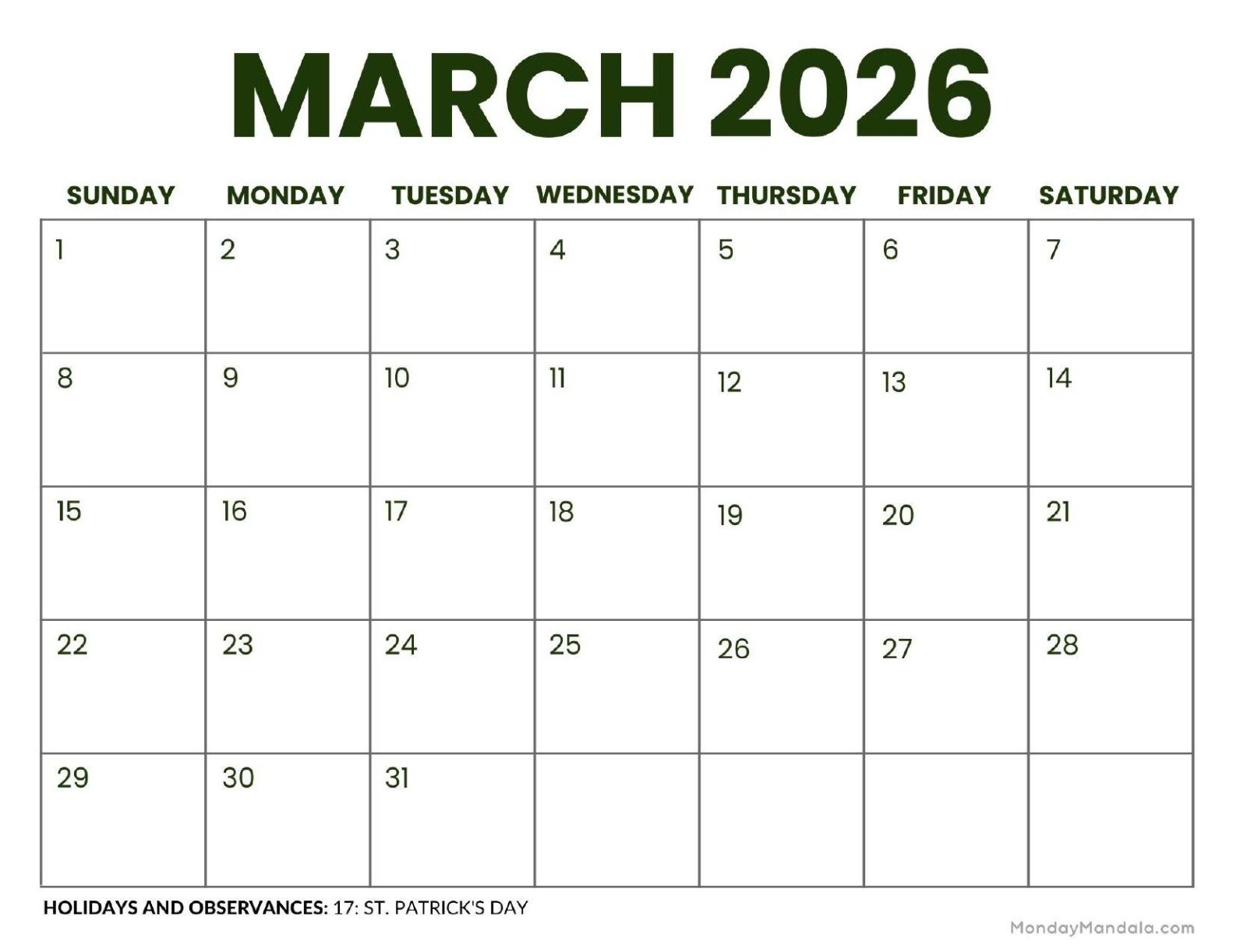Get your hands on a March 2026 Calendar Printabulls today and start organizing your month in style. With a variety of designs and layouts to choose from, you’ll find the perfect calendar to suit your needs and keep you on track all month long. Happy planning!
