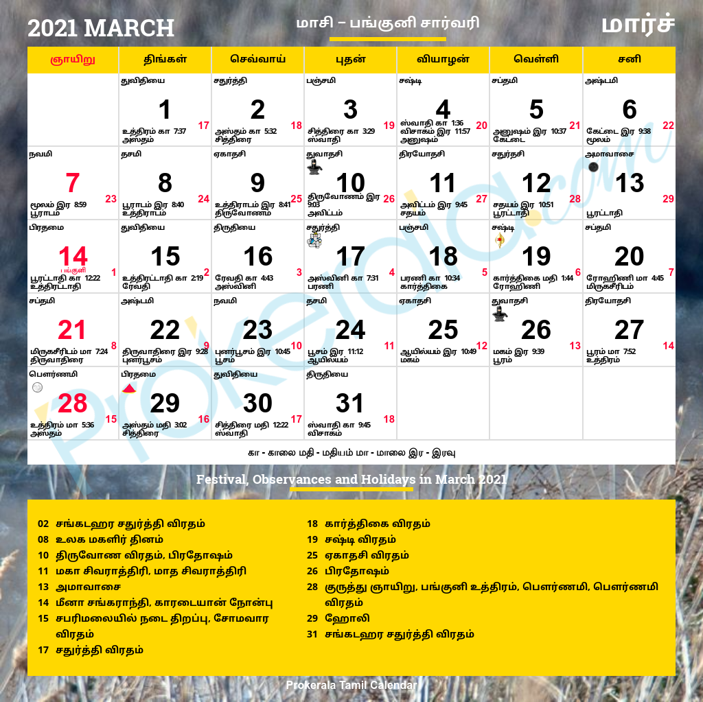 Tamil Calendar 2023 March
