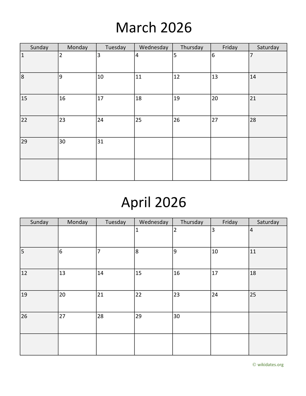 March And April 2026 Calendar WikiDates