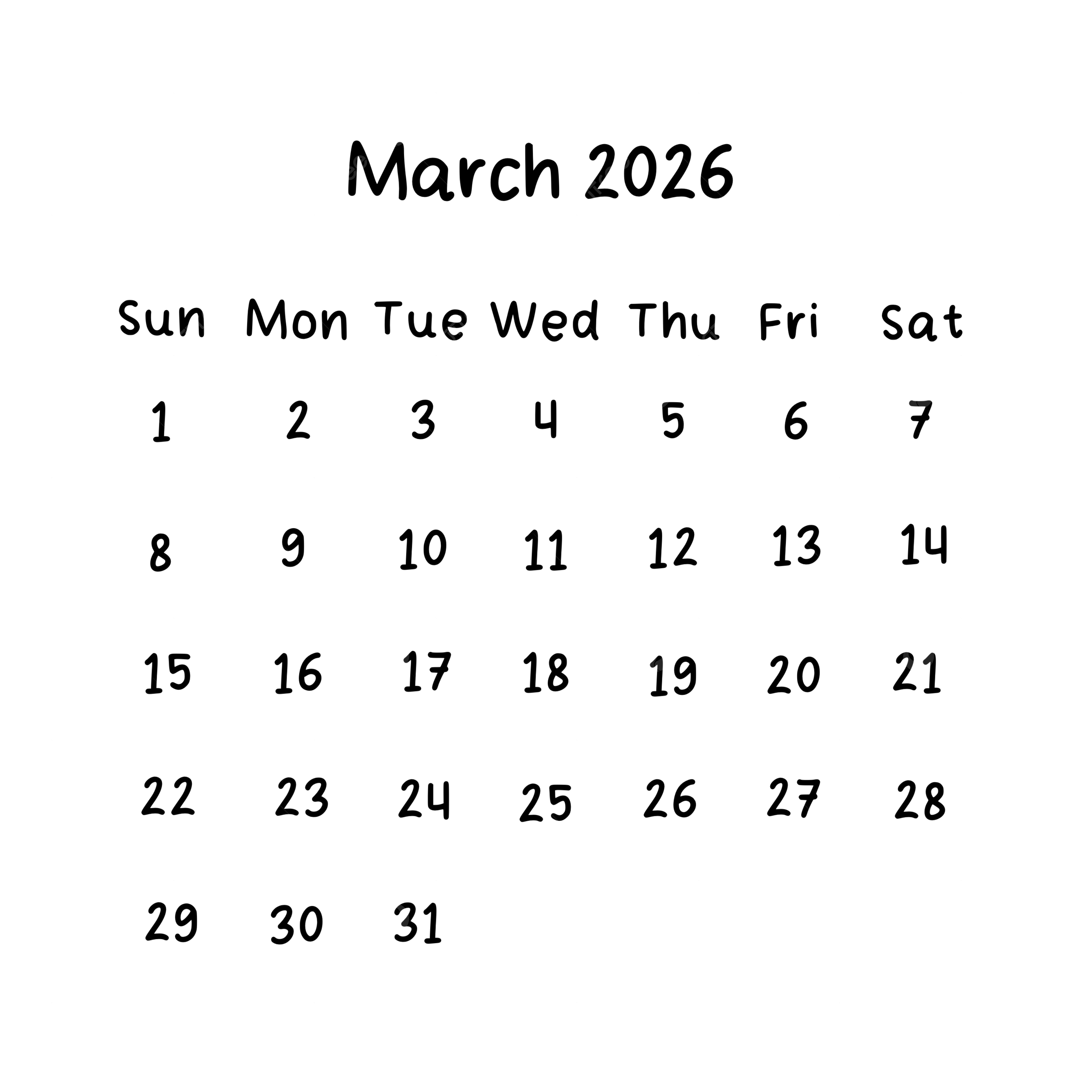 Monthly Calendar 2026 March Month Vector Template Download On Pngtree