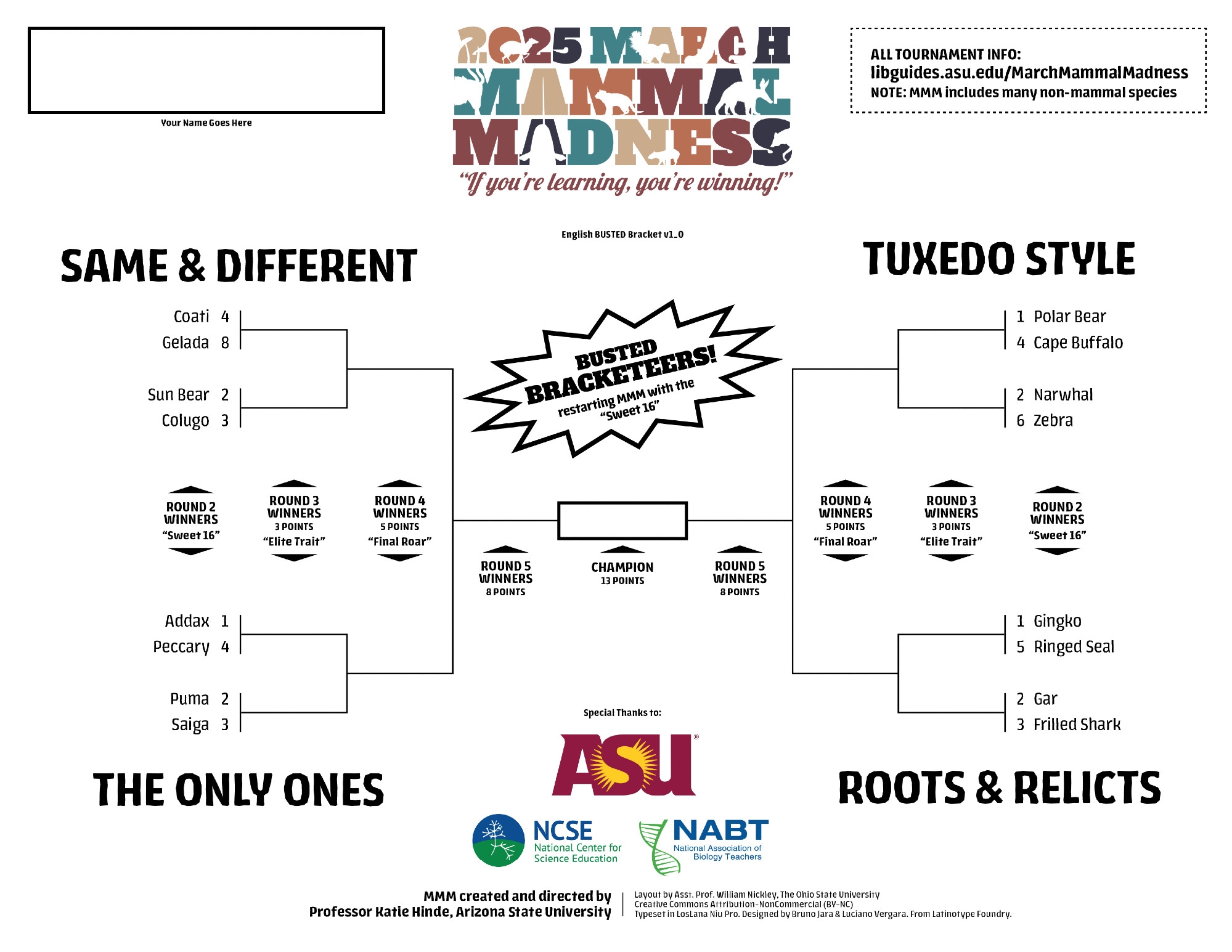2025 MMM March Mammal Madness Tournaments MMM PJAMAL COM Results