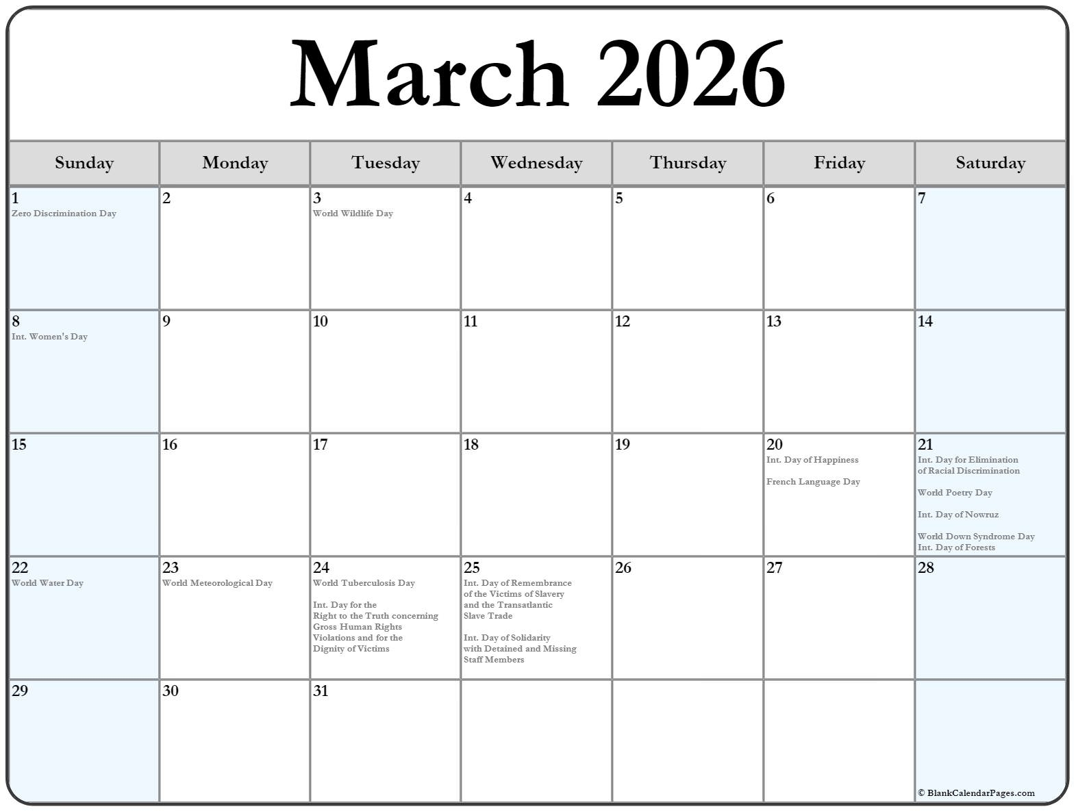 March 2026 Calendars Free PDF Printables