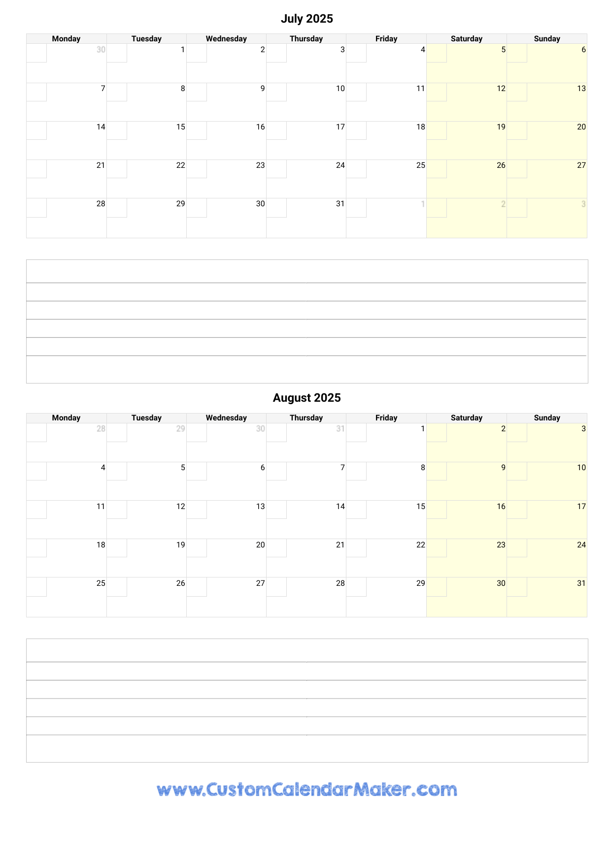 July And August 2025 Calendar WikiDates