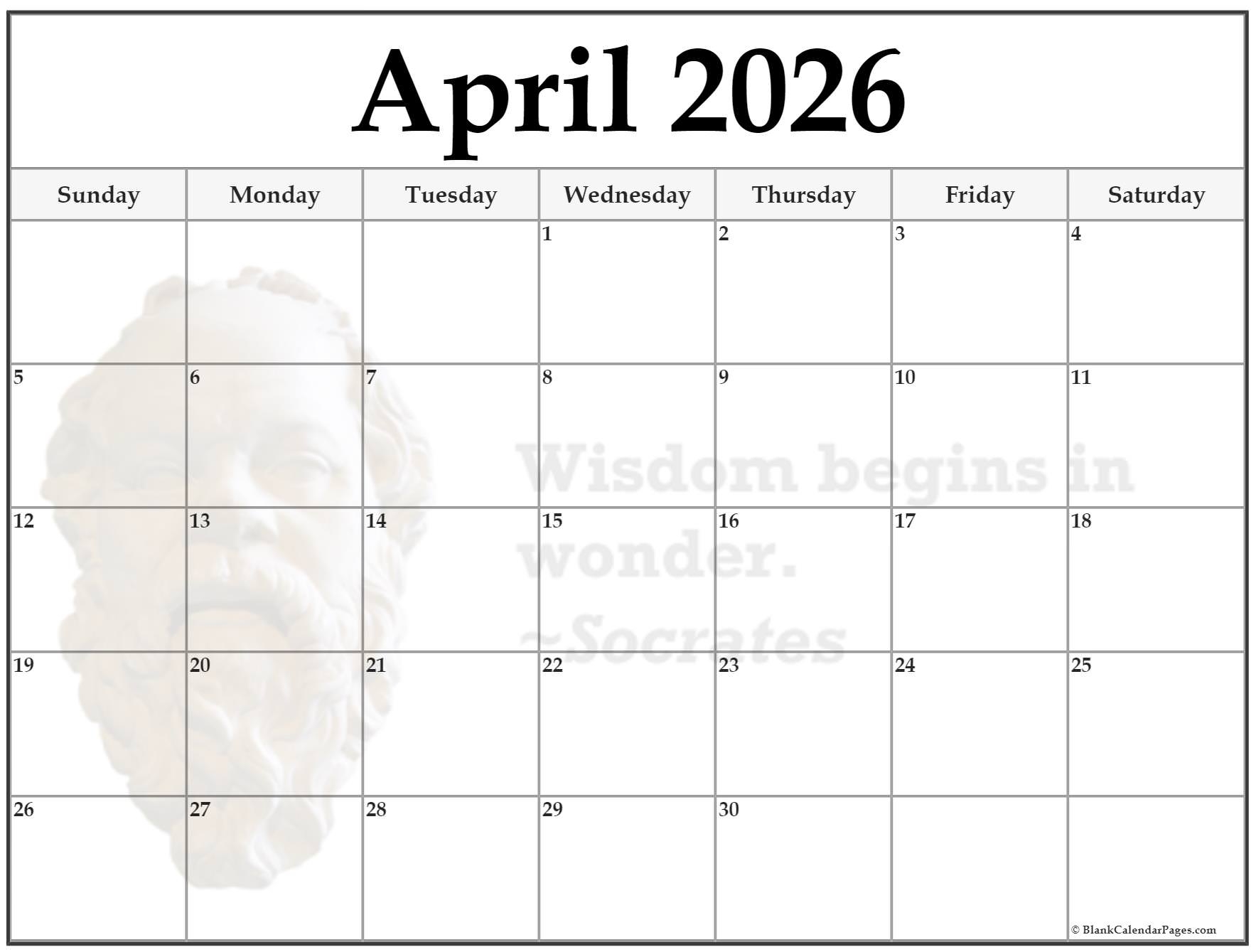 Moon Phases Calendar For The Month Of April 2026