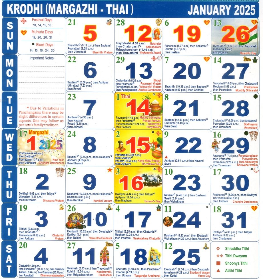 Tamil Calendar January Month 2025