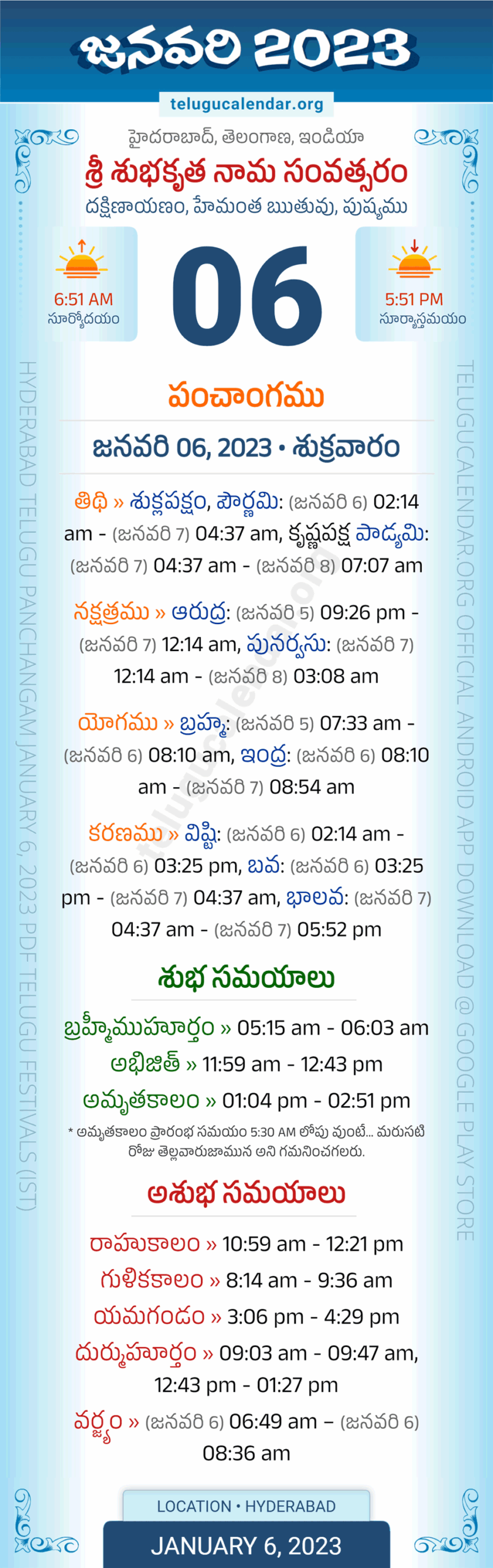 Telangana Panchangam January 6 2023 Telugu Calendar Daily