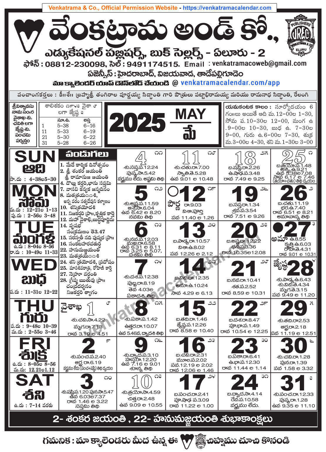 Venkatrama Telugu Calendar 2025 May Venkatrama Telugu Calendar 2025 Festivals Rasi Phalalu 2025 2026 Muhurtham