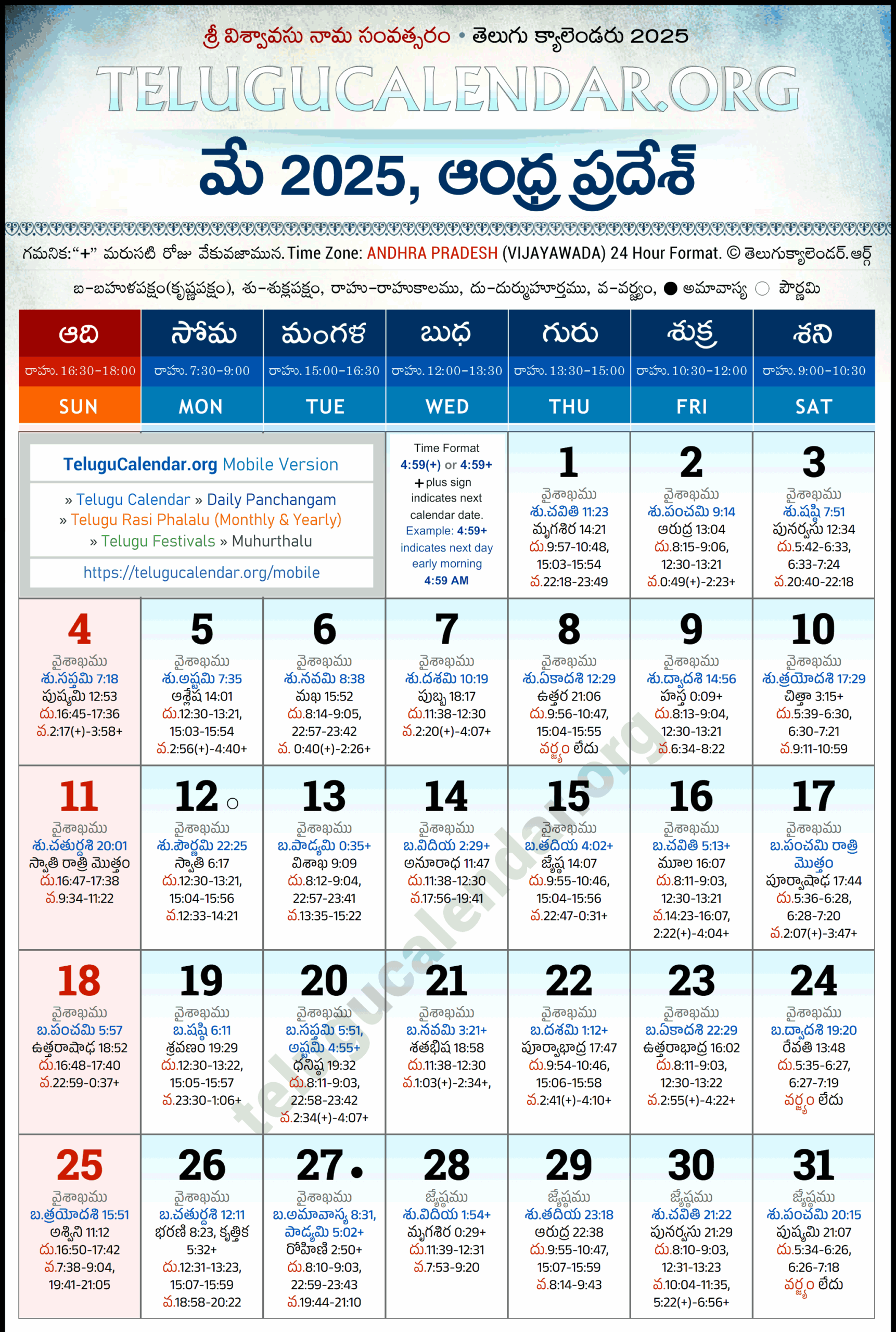 Andhra Pradesh Telugu Calendar 2025 May PDF Festivals