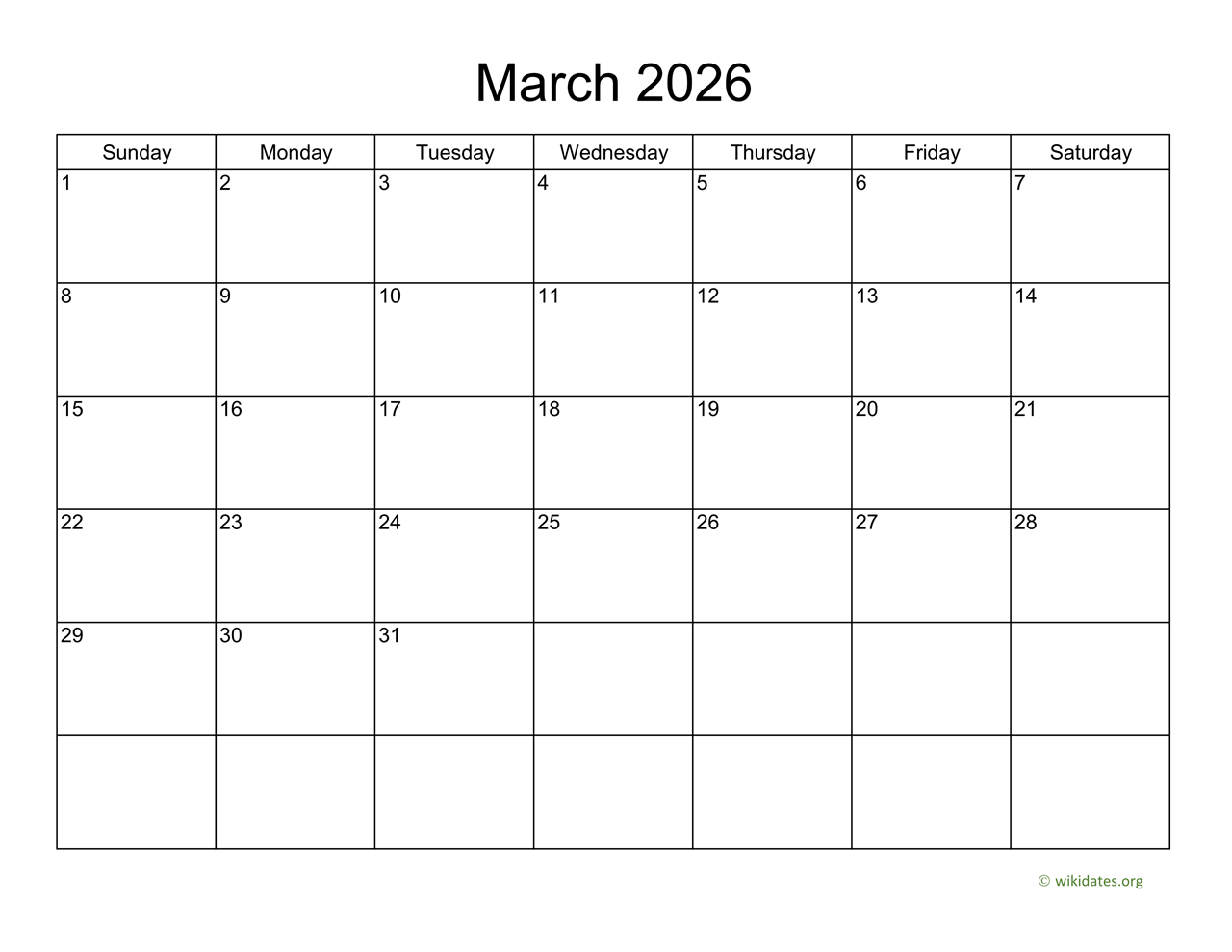 March 2026 is just around the corner, and that means it’s time to start planning your month ahead. With the help of Wiki Calendar, you can stay organized and on top of your schedule with ease.
